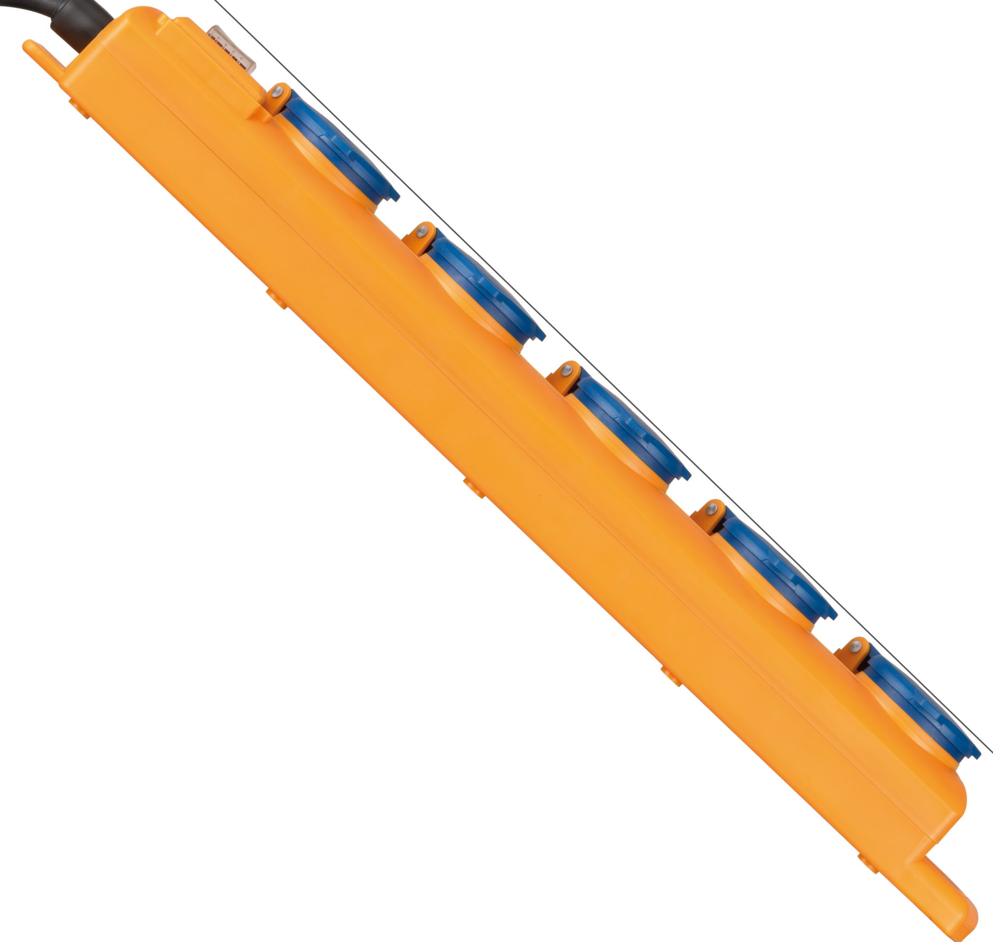 - 5 Steckdosen mit erhöhtem Berührungsschutz in praktischer 45°-Anordnung, ideal für Winkelstecker.