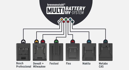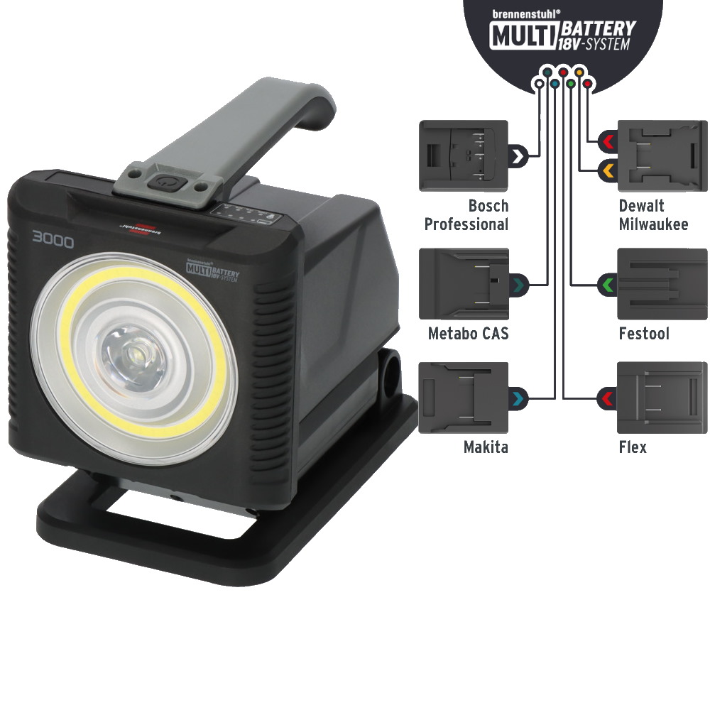 - LED Handscheinwerfer mit brennenstuhl Multi Battery 18V System ermöglicht es, auf das Akku-System seiner Wahl zurückzugreifen - eine technologische Innovation im Bereich der Arbeitsbeleuchtung