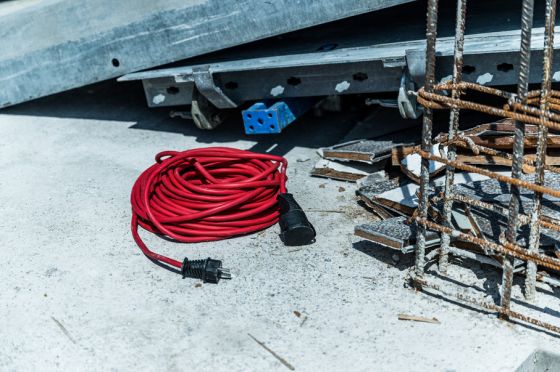 Baustellen-Verlängerungskabel (Outdoor-Verlängerungskabel mit 25m Kabel in rot, für den ständigen Einsatz im Außenbereich IP44)