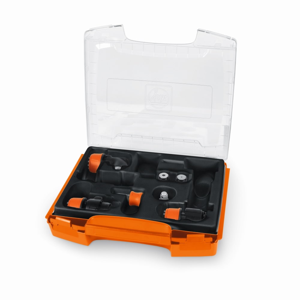 Das Zubehör-Set eignet sich für vielseitige Anwendungen im Handwerk und auf der Baustelle. Es ermöglicht schnelles und flexibles Arbeiten mit verschiedenen Fein-Maschinen und sorgt für eine optimale Nutzung des QuickIN-Systems.