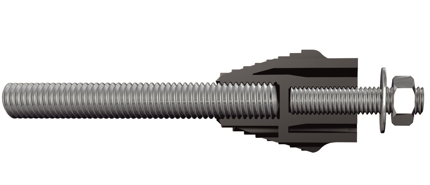 Das fischer Abstandsmontagesystem Thermax ist eine Lösung zur Befestigung in der Außenwand ohne Wärmebrücken im WDVS. Das System besteht aus einer speziellen Ankerstange aus galvanisch verzinktem Stahl mit einem glasfaserverstärkten Konus, Gewindestiften und Ankerhülsen für die Befestigung in Lochstein. In Kombination mit den fischer Hochleistungsmörteln FIS EM, FIS V, FIS SB und FIS GREEN ist das System für zahlreiche Baustoffe zugelassen. Die Ankerstange mit dem glasfaserverstärkten Konus fräst sich selbstschneidend durch den Putz in den Dämmstoff. Die Ankerstange wird in der Ankerhülse mit einem Injektionsmörtel im Baustoff verankert. Der Konus am Kopf der Ankerstange unterbricht die Wärmebrücke und nimmt den Gewindestift aus nicht rostendem Stahl für die äußere Befestigung auf. Der Thermax befestigt schwere Lasten wie Markisen, Klimageräte und Satellitenanlagen in Beton, Porenbeton und Mauerwerk aus Loch- und Vollstein.