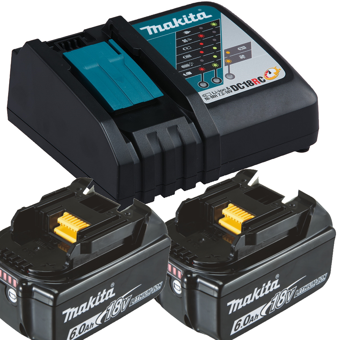 Produktinformationen "Makita Ladegerät - DC18RC - 14,4-18V + 2x BL1860 AKKU im Set"