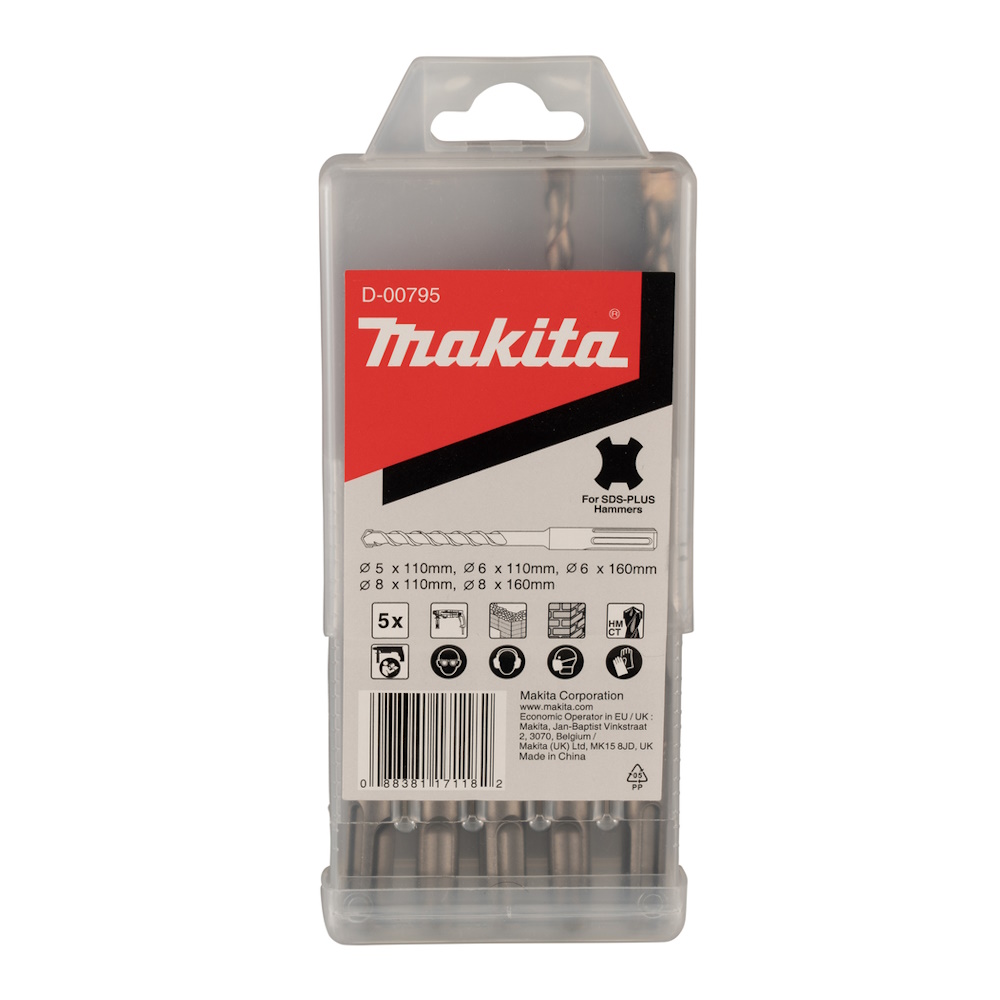 Makita SDS-PLUS Bohrerset – 5-teilig für Beton – Ø 5 / 6 / 8 mm