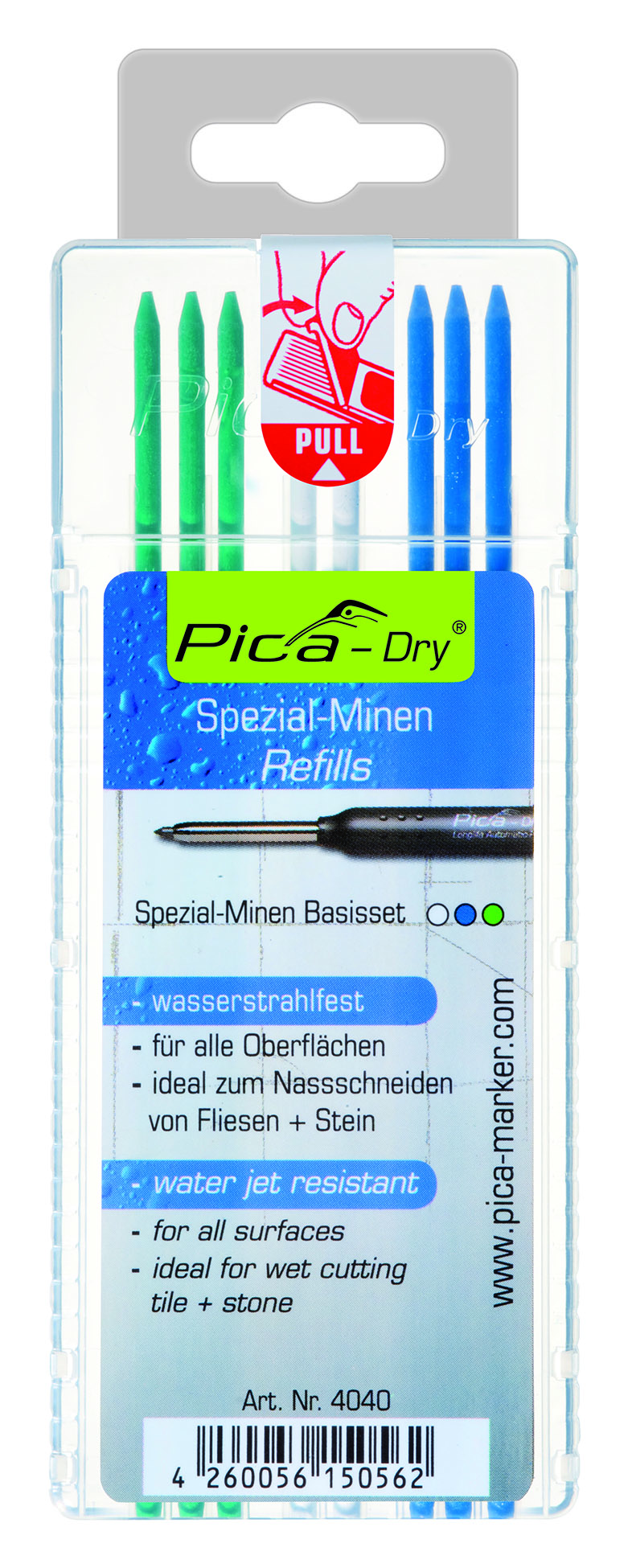 • 1x 4040 Pica-Dry® Ersatzminen-Set Wasserstrahlfest, Blau, Weiß, Grün