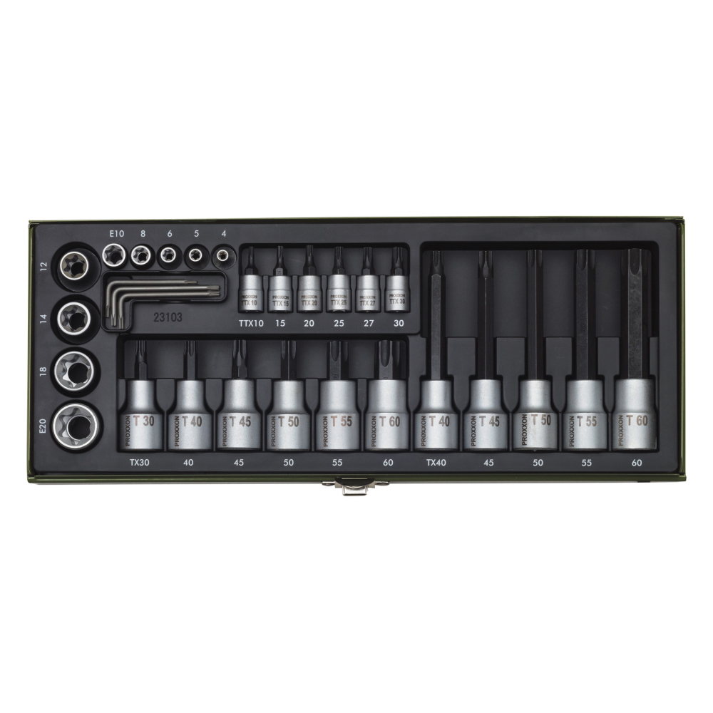 Produktinformationen "Proxxon Steckschlüsselsatz Spezialsatz TX - 29-teilig - im Stahlkasten - 23103"