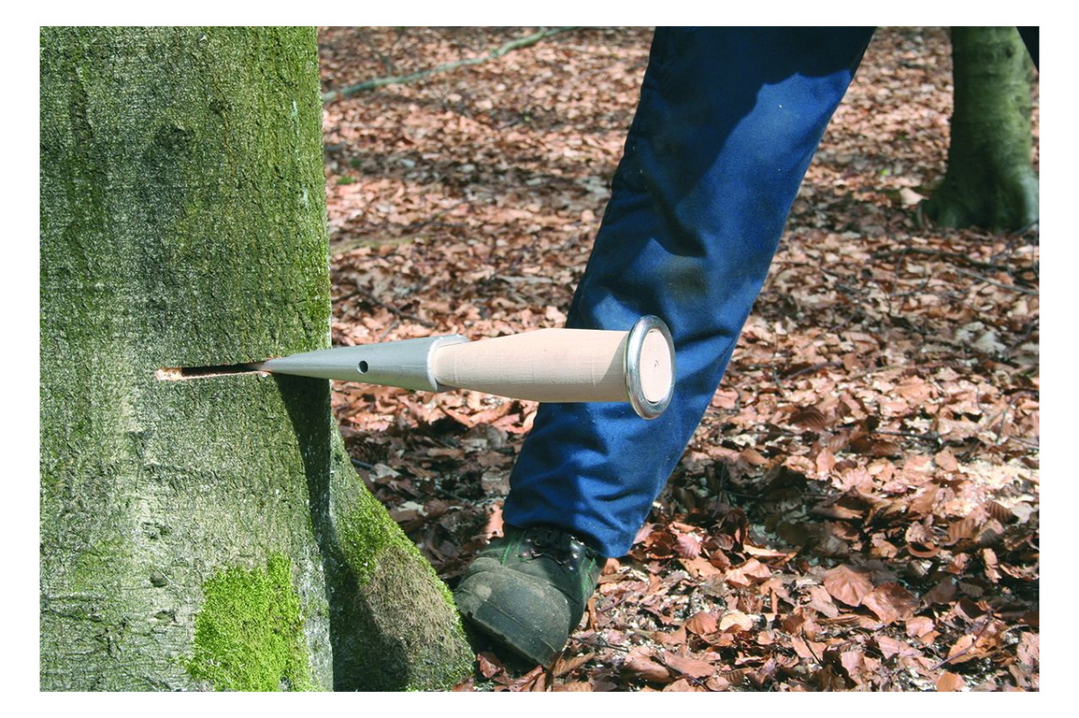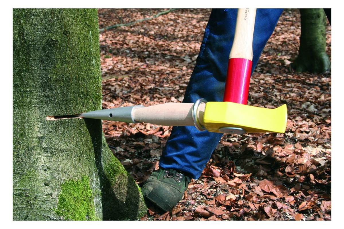 - Der Alu-Ring beim Holzeinsatz verhindert Absplitterungen beim Eintreiben