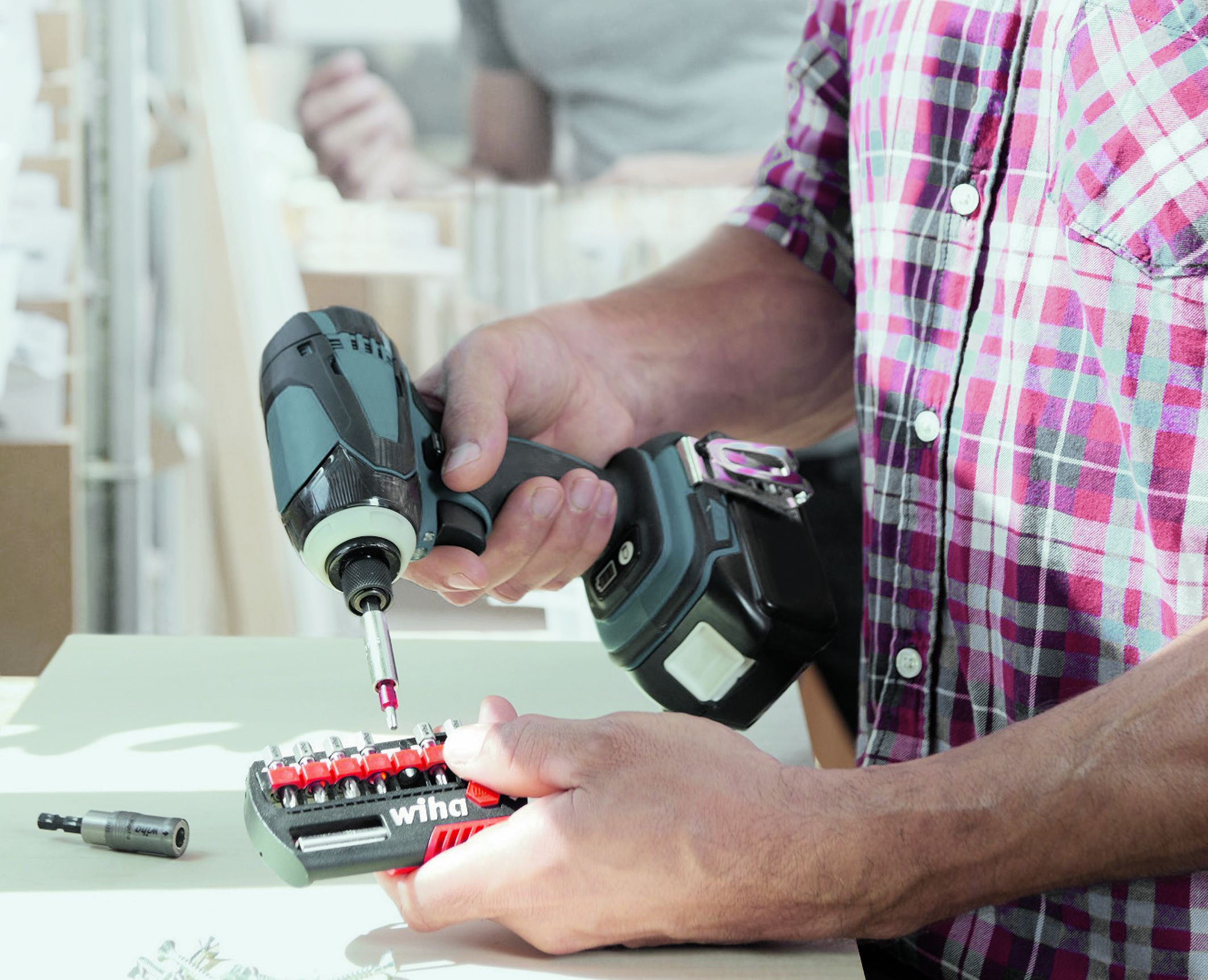 Für alle Arten von Schrauben geeignet. Auch für Impact- und Schlagschrauber geeignet. Keine Hand frei und das lästige Suchen nach dem richtigen Bit satt? Der Wiha BitBuddy® ermöglicht die direkte Aufnahme der Bits in der Maschine sowie das einfache Zurückführen in den Halter. Dank der neuartigen Anordnung der Bits in der Halterung sowie der gelaserten Profilgröße auf dem Bitboden wird die Auswahl der richtigen Größe bei der Bitentnahme zum Kinderspiel. Der enthaltene TY-Bit ist als Multitalent für alle Arten von Schrauben, sowohl für T-förmige als auch Y-förmige Schrauben, geeignet und somit das ideale Werkzeug für Verschraubungen in allen Materialen. Dank der patentierten, verlängerten Torsionszone ist der Bit auch für Impact- und Schlagschrauber geeignet und garantiert eine 120x höhere Lebensdauer im Vergleich zu den Wiha Standardbits. Zudem sind die farbigen Bits schnell und einfach auffindbar und dank des Farbmantels auch im Dunkeln mit UV-Licht gut zu finden. DIN 3126, ISO 1173, Form E6,3