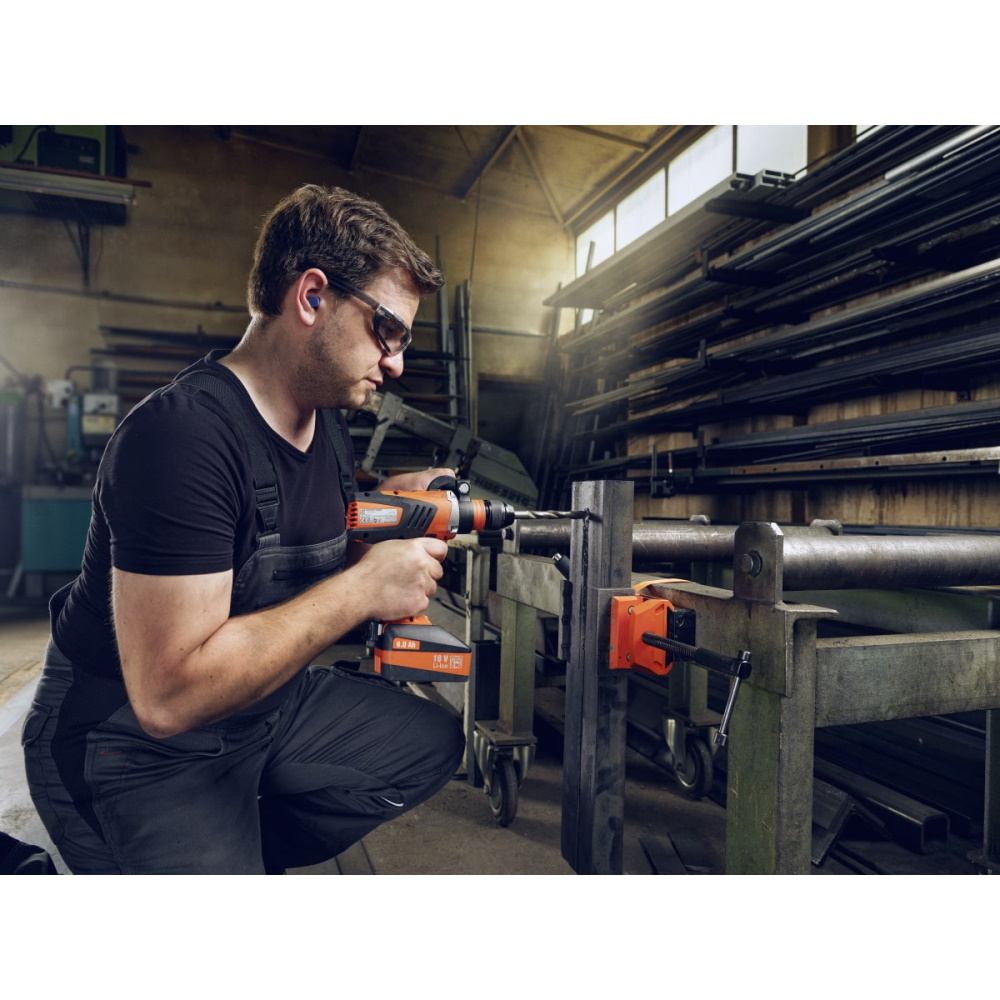 Der FEIN VersaMAG Schraubstock ist die ideale Lösung für sicheres und flexibles Spannen auf magnetischen Oberflächen. Dank des leistungsstarken Permanentmagneten mit 7.800 N Haltekraft lassen sich Bauteile präzise und stabil fixieren – auch auf dünnen Blechen ab 4 mm Materialstärke. Durch das kompakte Design eignet sich der Schraubstock perfekt für den mobilen Einsatz und ermöglicht sogar das Arbeiten in engen Räumen oder an vertikalen Flächen.