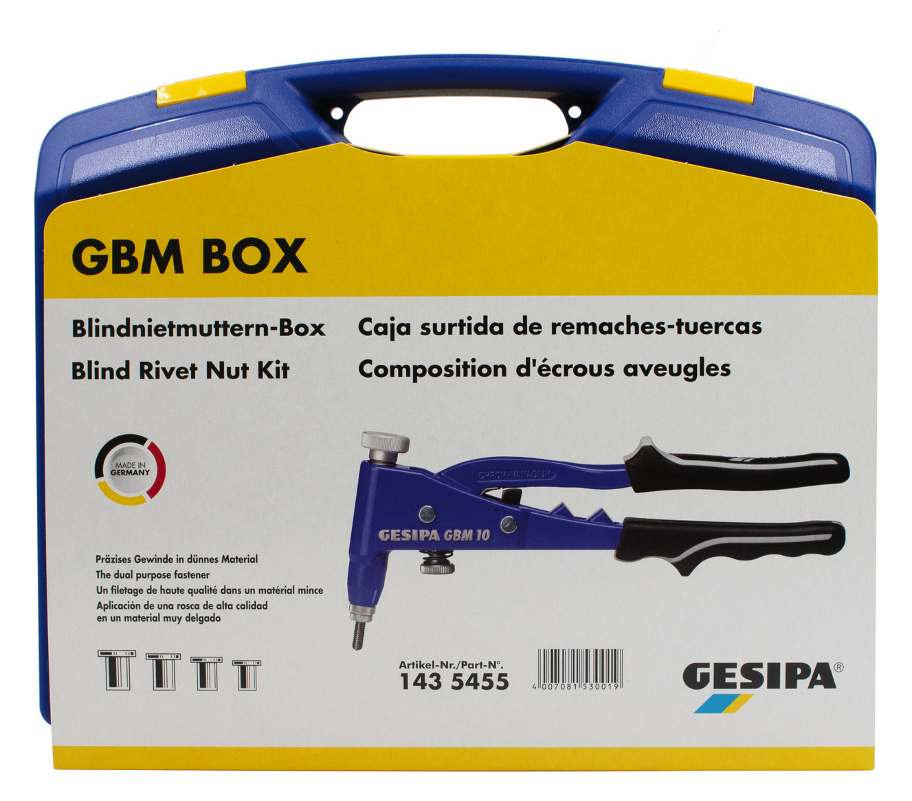 Produktinformationen "Gesipa Blindnietmuttern-Box - inkl. Nietzange - M3-M6 Alu - M5 Stahl - 1435455"