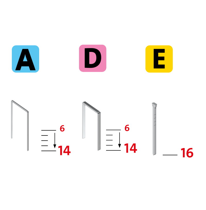 Vielseitig einsetzbar: Verarbeitet Feindraht- und Flachdrahtklammern von 6–14 mm sowie Nägel bis 16 mm