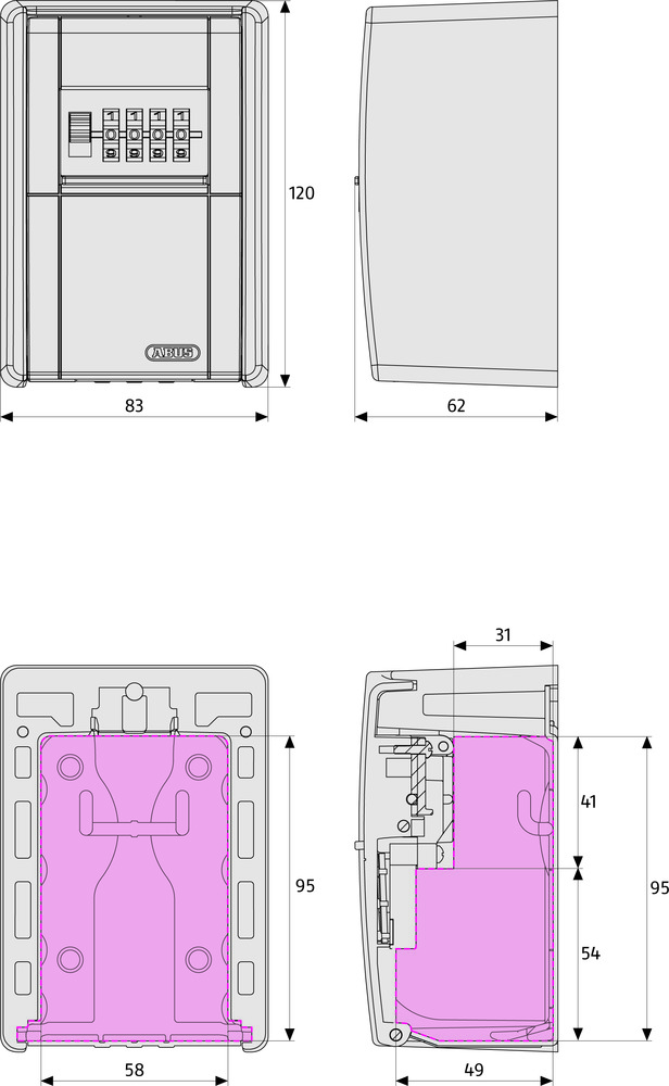 - Außenmaße des Gehäuses: 84 x 119 x 62