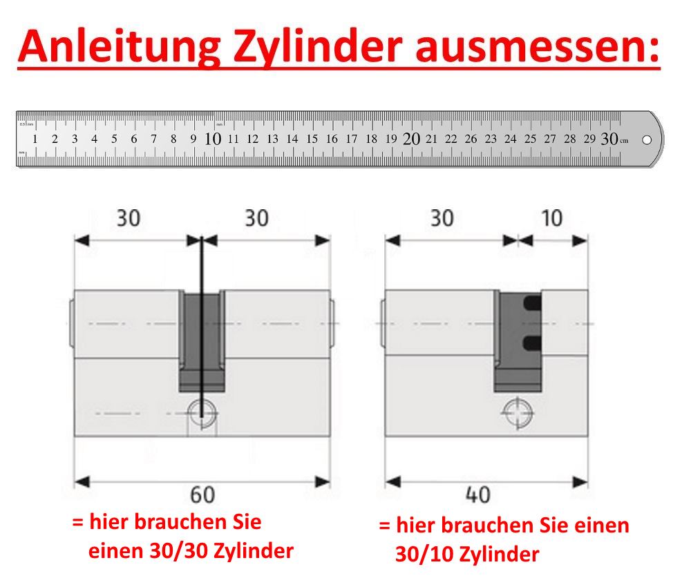 SEHR WICHTIG: bitte lesen Sie vorab die Anleitung, wie man den Zylinder richtig ausmisst. Bitte sehen Sie hierfür Bild 2 an.