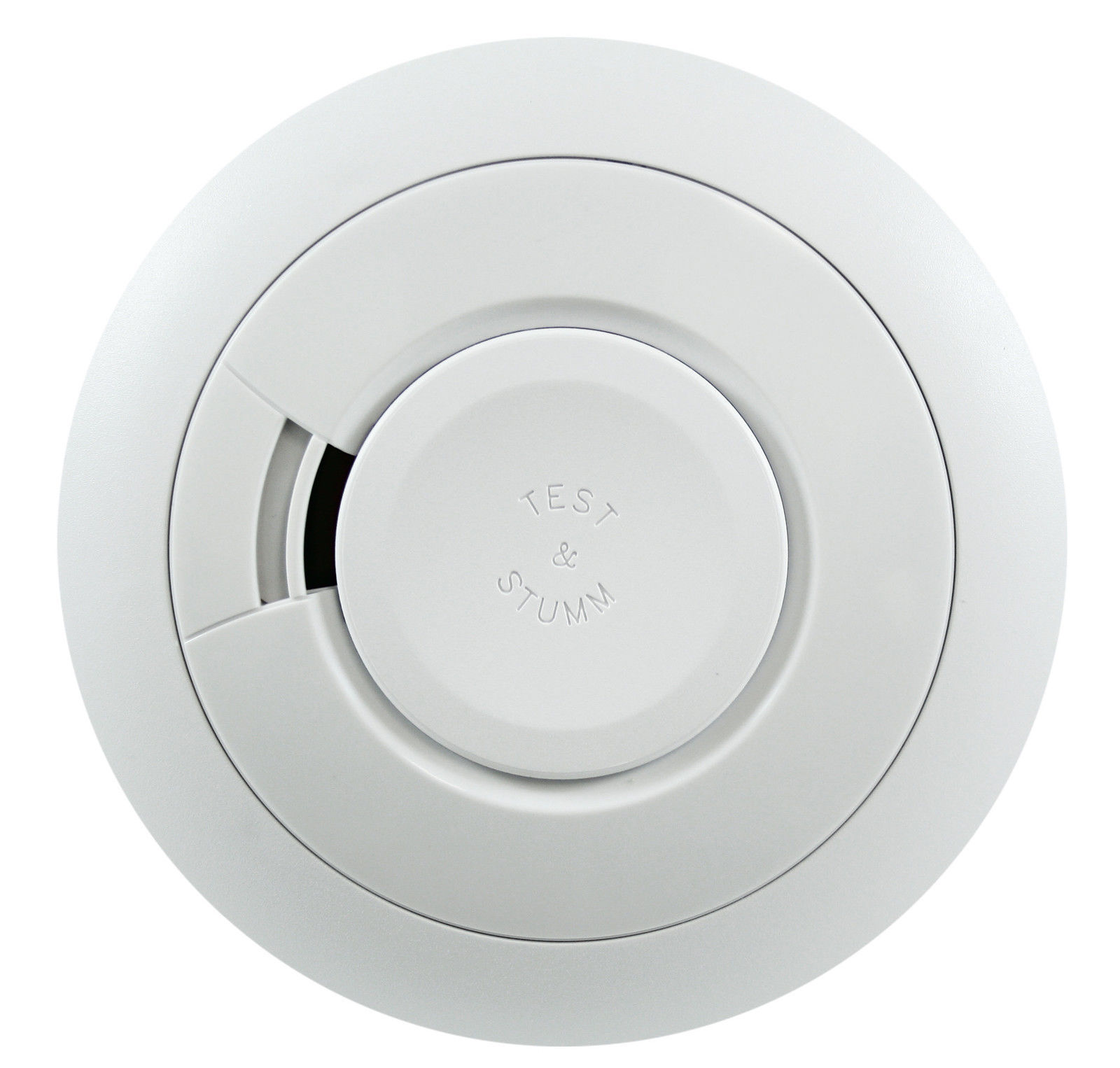 - Großer Test-/ Stummschaltknopf (Bedienung ohne Leiter vom Boden aus)