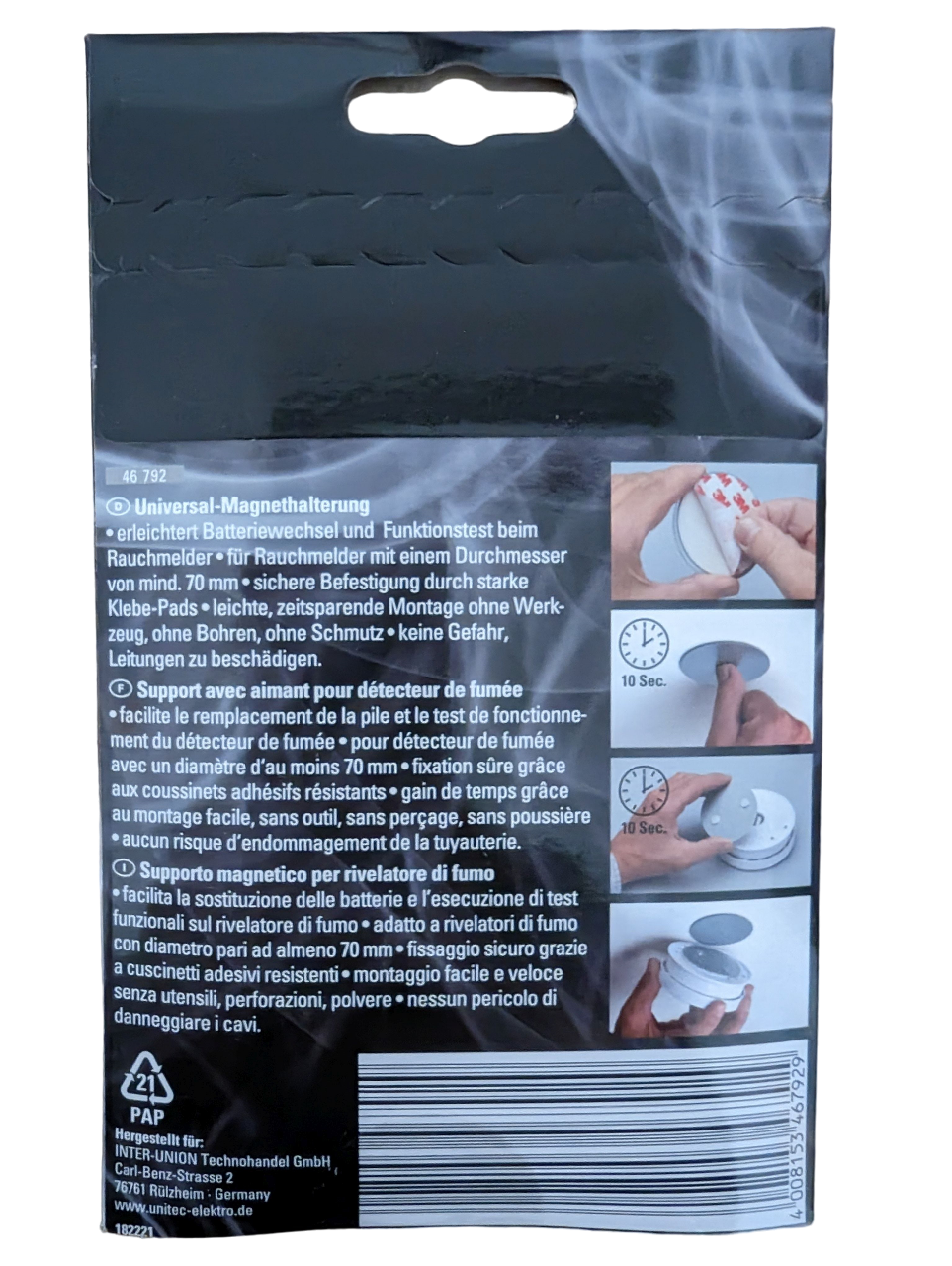 Die Magnethalterung dient der einfachen Befestigung ohne Werkzeug, Bohren und Schmutz.