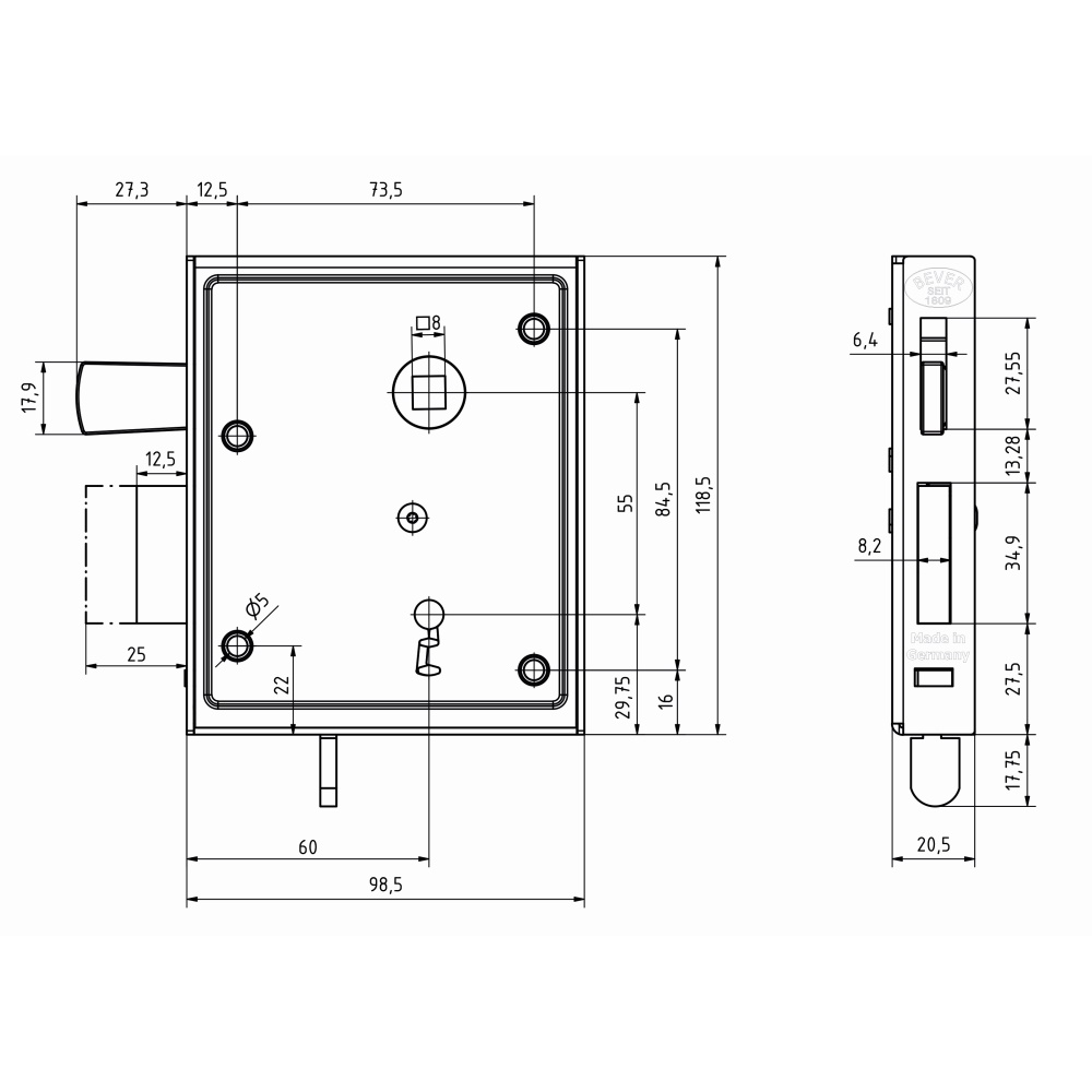 - 1x Bever Kastenschloss Universalschloss (mit hebender Falle)