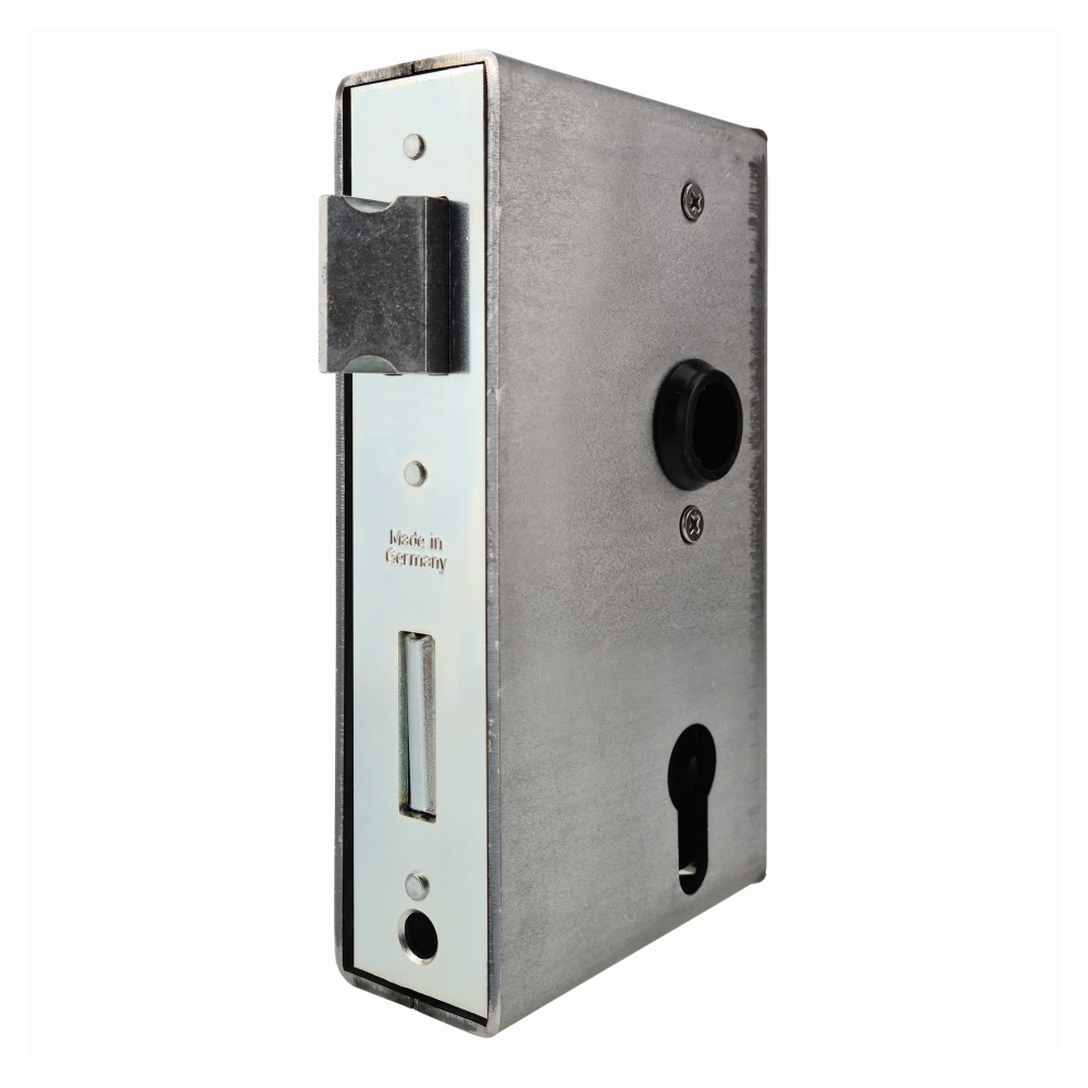 Das Bever Schloss und Gehäuse mit senkrechten Befestigungshülsen ist eine robuste und vielseitige Lösung für Türen mit Rund- oder Rechteckrohrprofilen. Dank der umstellbaren DIN-Richtung eignet es sich für zahlreiche Einsatzbereiche.