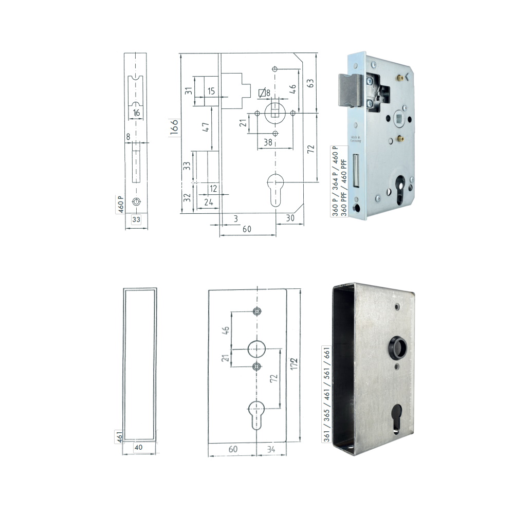 - 1x Schloss und Gehäuse Bever mit Befestigungshülsen