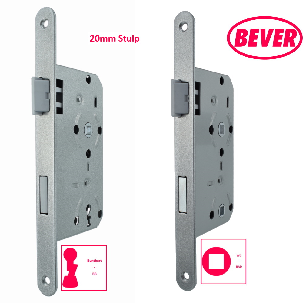 Produktinformationen "Bever Einsteckschloss Zimmertür BB WC 55/72/8 - 20mm Stulp rund Kunststofffalle"