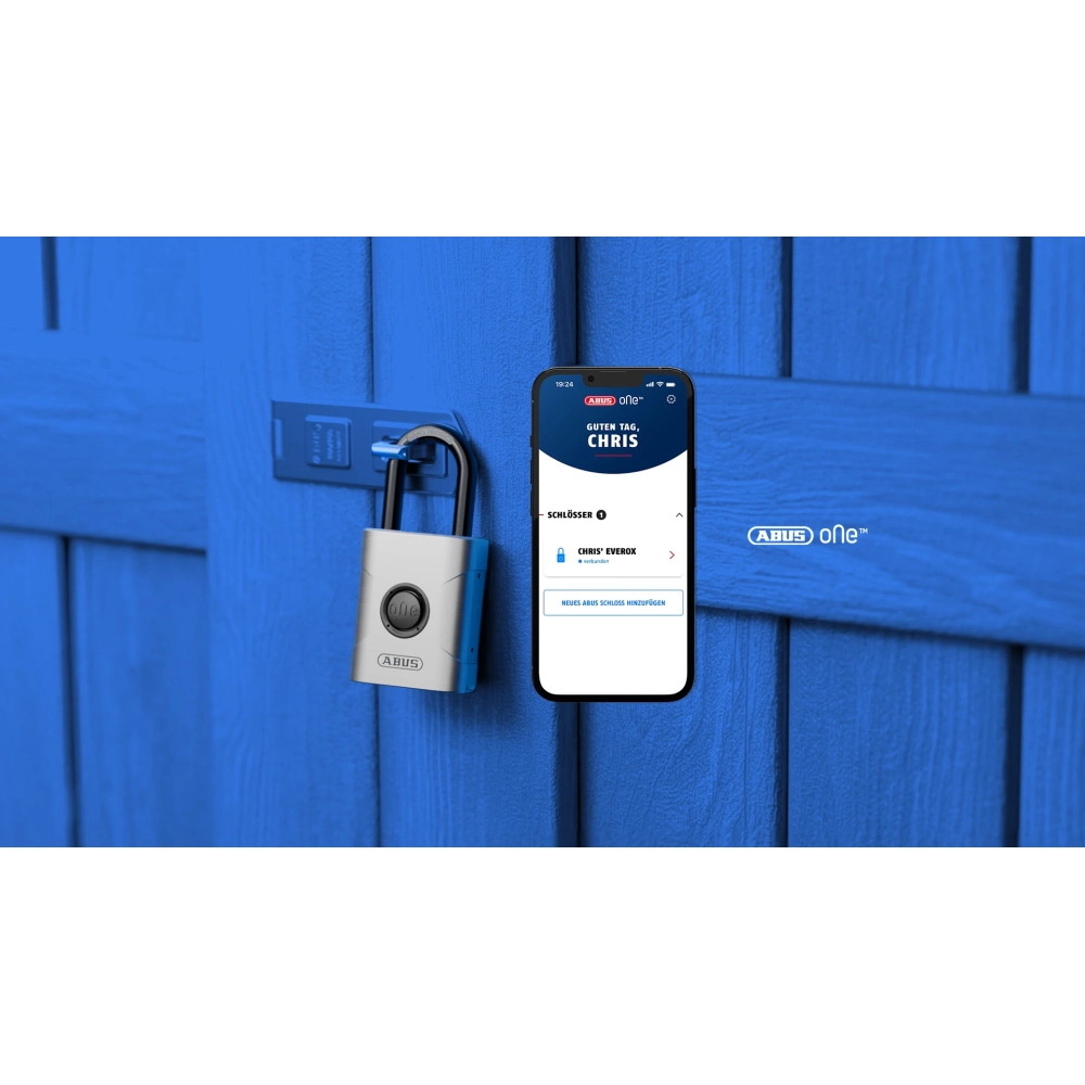 Das wetterfeste ABUS Bluetooth® Vorhängeschloss EVEROX One 61/50 vereint modernen Komfort mit bewährter ABUS-Sicherheit – ideal für alle, die zuverlässigen Schutz ohne Schlüssel suchen.