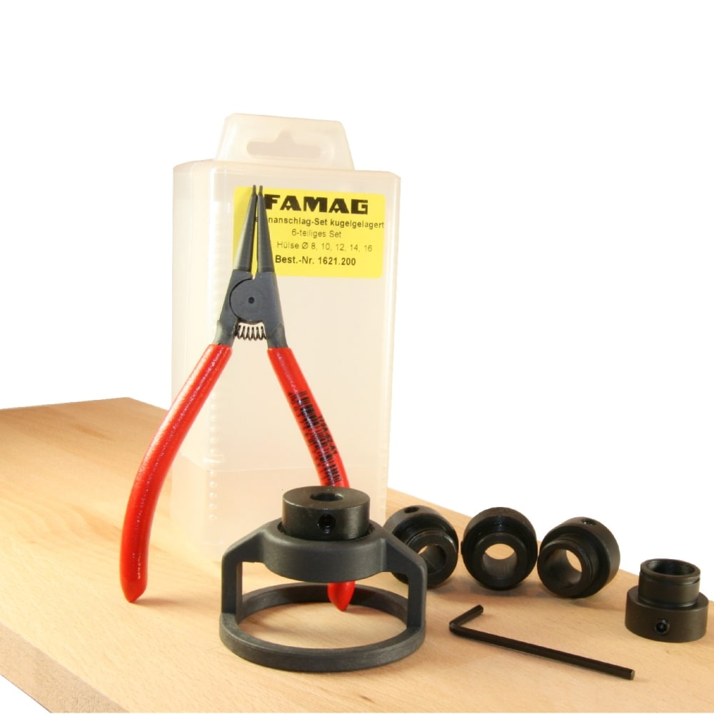 Produktinformationen "Famag Tiefenanschlag Set inklusive Sicherungszange im Holzkasten - Ø 10-50mm"