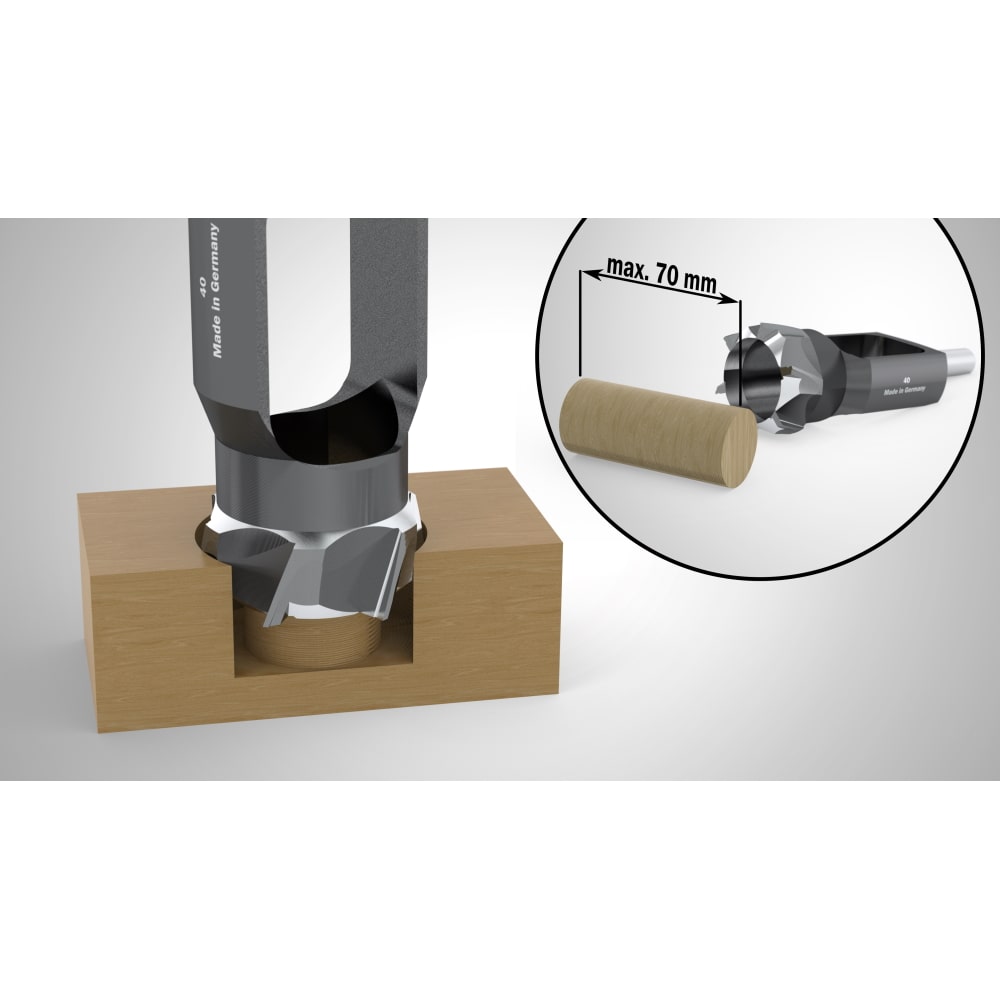 - Anwendungsbereich: Perfekt zum Herstellen von Holzstopfen, die ausgebrochene Äste auffüllen oder Holzschäden reparieren. In Verbindung mit Bormax®-Bohrern erhalten Sie eine hervorragende Passgenauigkeit.
