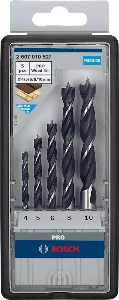 Produktinformationen "Bosch Pro Wood Holzspiralbohrer-Set - 5-teilig - 4,5,6,8,10mm - 2607010527"