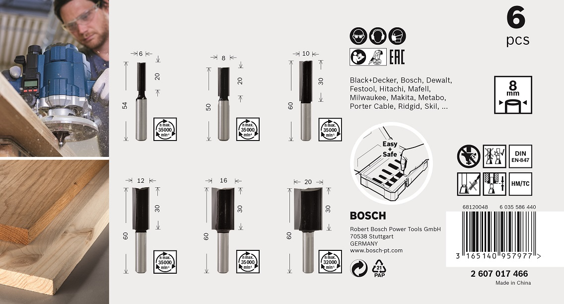Produktinformationen "Bosch 6-teiliges Nutfräser-Set Nut Fräser - 8mm Schaft - 2 und 3 schneidig"