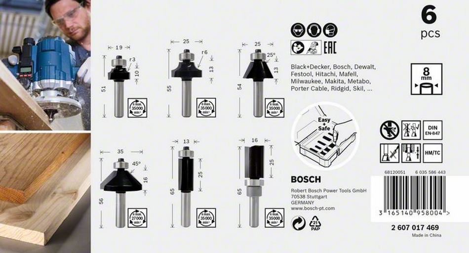 Produktinformationen "Bosch 6-teiliges Rand- und Kantenfräser-Set Fräser Set - 8mm Schaft - in Box"