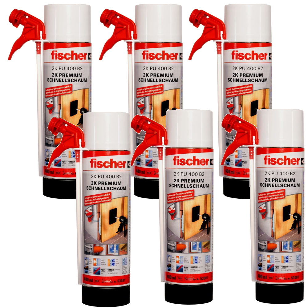 Produktinformationen "Fischer Zargenschaum Montageschaum Schnellschaum PU 400 B2 - 2K - 6 Stück"
