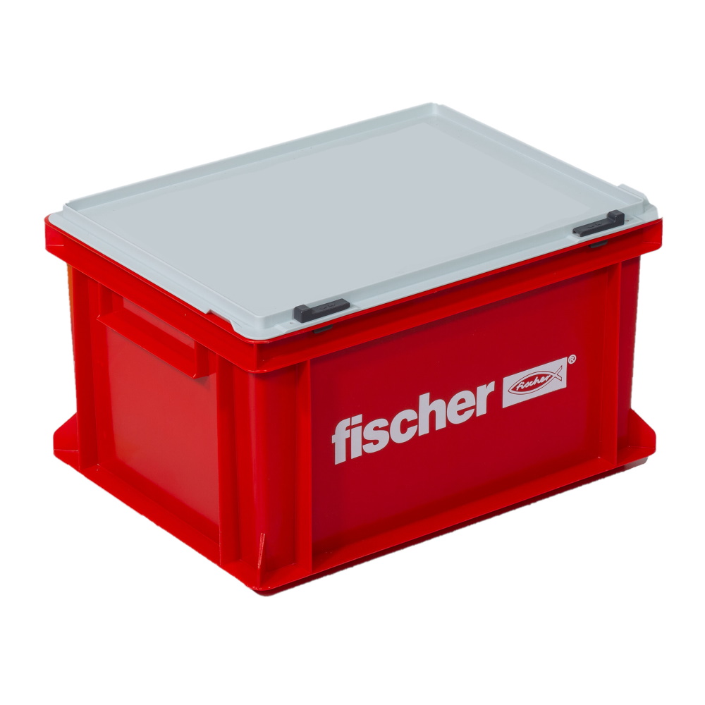 1× fischer Transportbox (400 × 300 × 237 mm, stapelbar & verriegelbar)