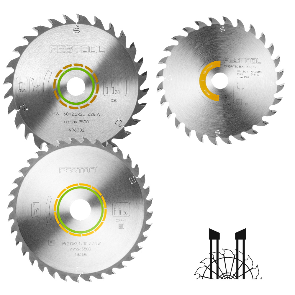 Produktinformationen "Festool Kreissägeblatt WOOD UNIVERSAL 160mm - 210mm - 205551 - 496302 - 493198"