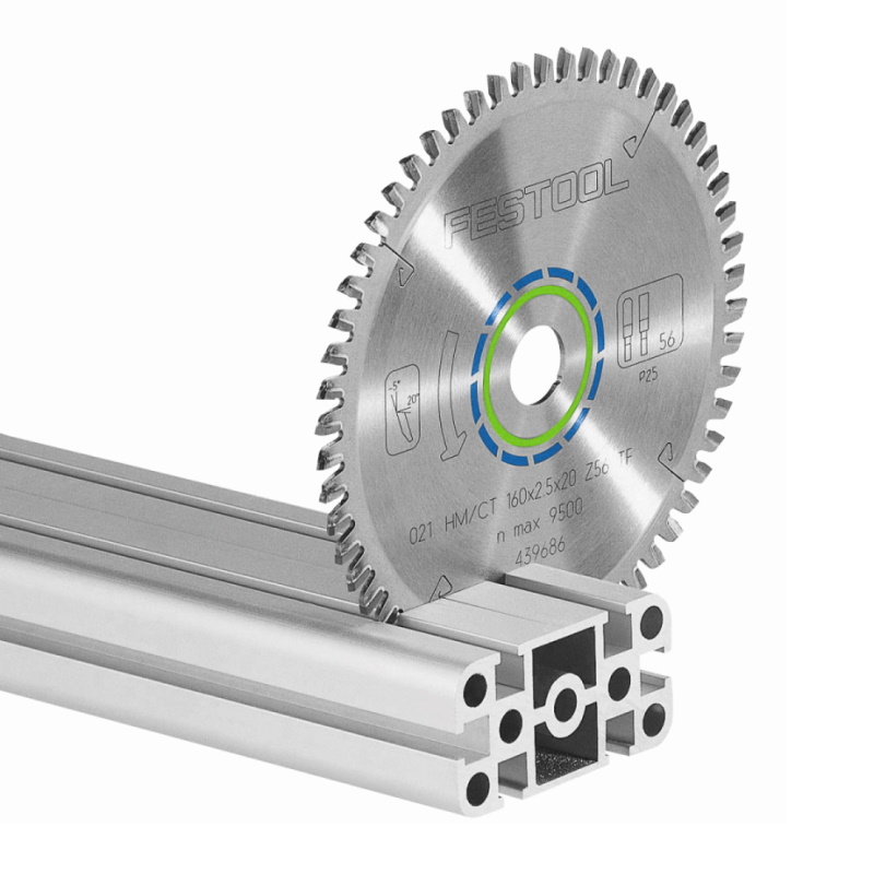 - Das Festool Spezial-Sägeblatt für einfache, saubere Schnitte durch Aluminiumprofile